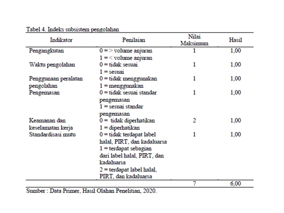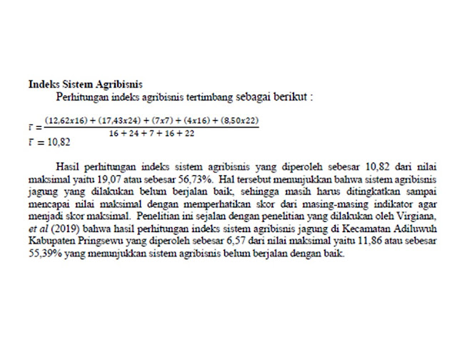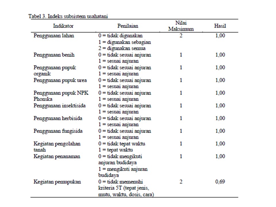 Metode analisis untuk melihat keberhasilan sistem agribisnis pada penelitian ini menggunakan indeks sistem agribisnis melalui kelima subsistem agribisnis, yaitu subsistem sarana produksi, usahatani, pengolahan, pemasaran, dan jasa layanan penunjang.
