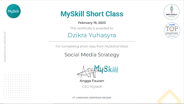 Saya baru saja mengikuti Short Class di MySkill yaitu Short Class Digital Marketing dan Short Class Data Analysis. Dalam pelaksanaan Short Class tersebut peserta diwajibkan untuk membuat dan mengerjakan Mini Task dan juga twibbon lalu menguploadnya ke sosial media.