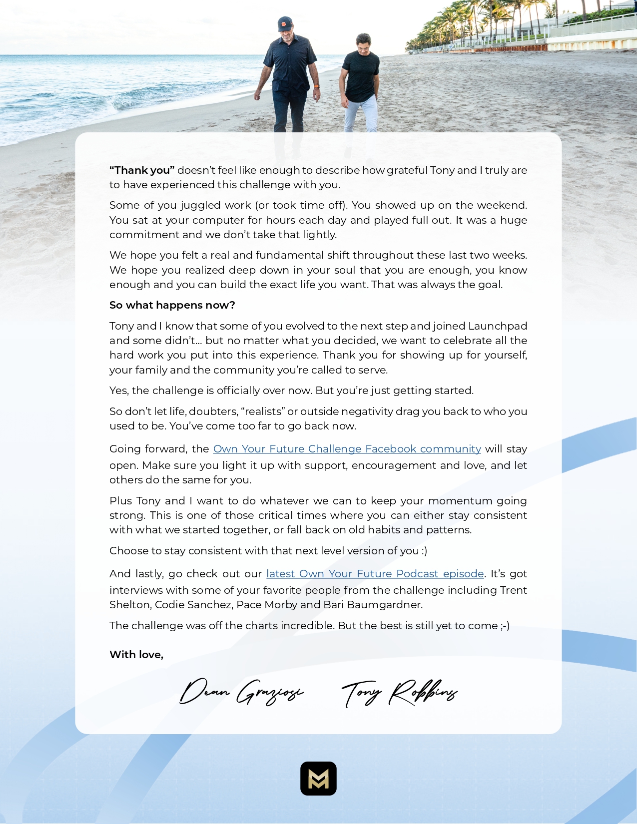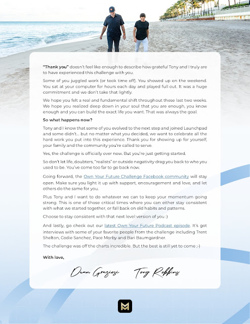 From August 1-7, 2023, I attended Own Your Future Challenge from Dean Graziosi and Tonny Robbins. This six days event discussed about Self-Education and Knowledge Industry and how we make and reflect our story, teach it, and use tools or action plans as blueprint and framework to monetize it.