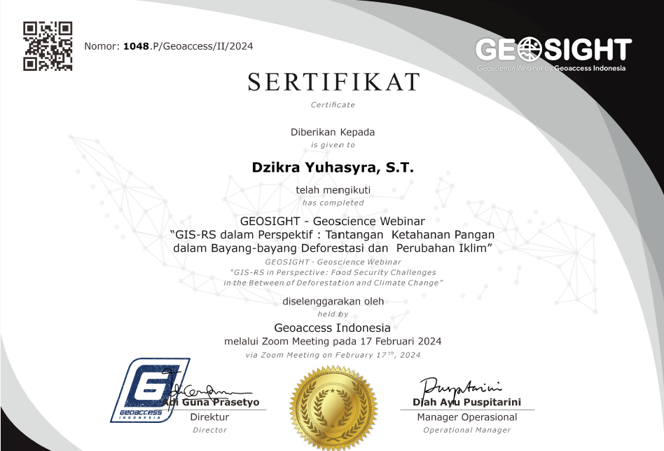 Baru aja mengikuti GEOSIGHT - Geoscience Webinar dari Geoaccess Indonesia @geoaccess dengan topik "GIS-RS dalam Perspektif: Tantangan Ketahanan Pangan dalam Bayang-bayang Deforestasi dan Perubahan Iklim".